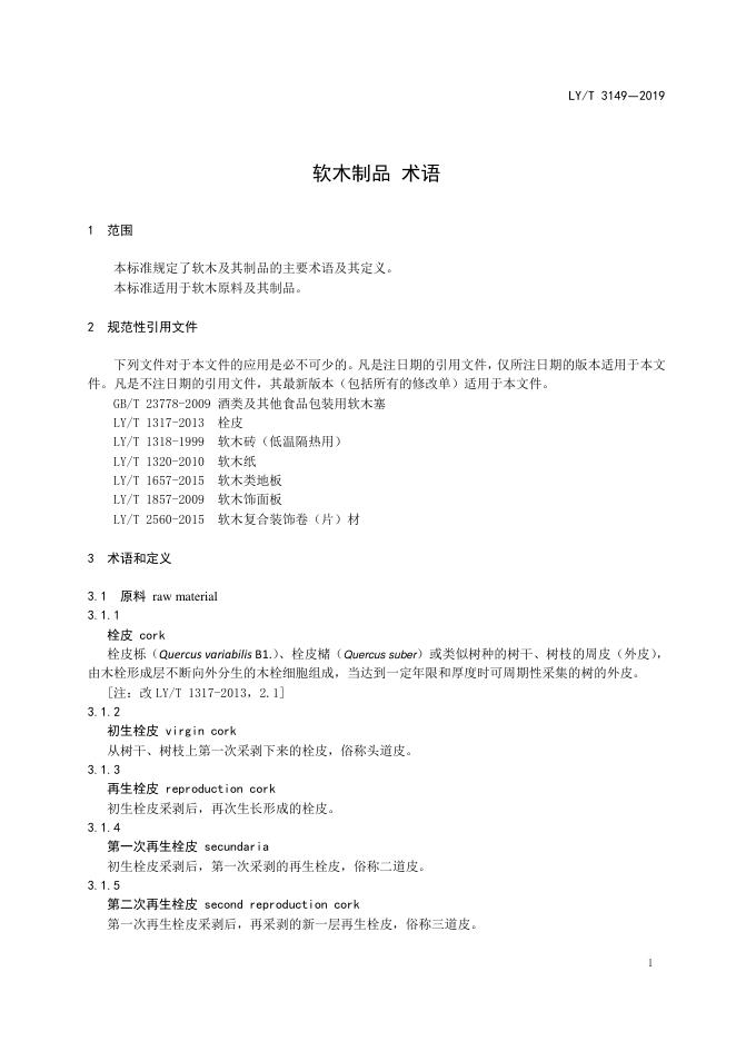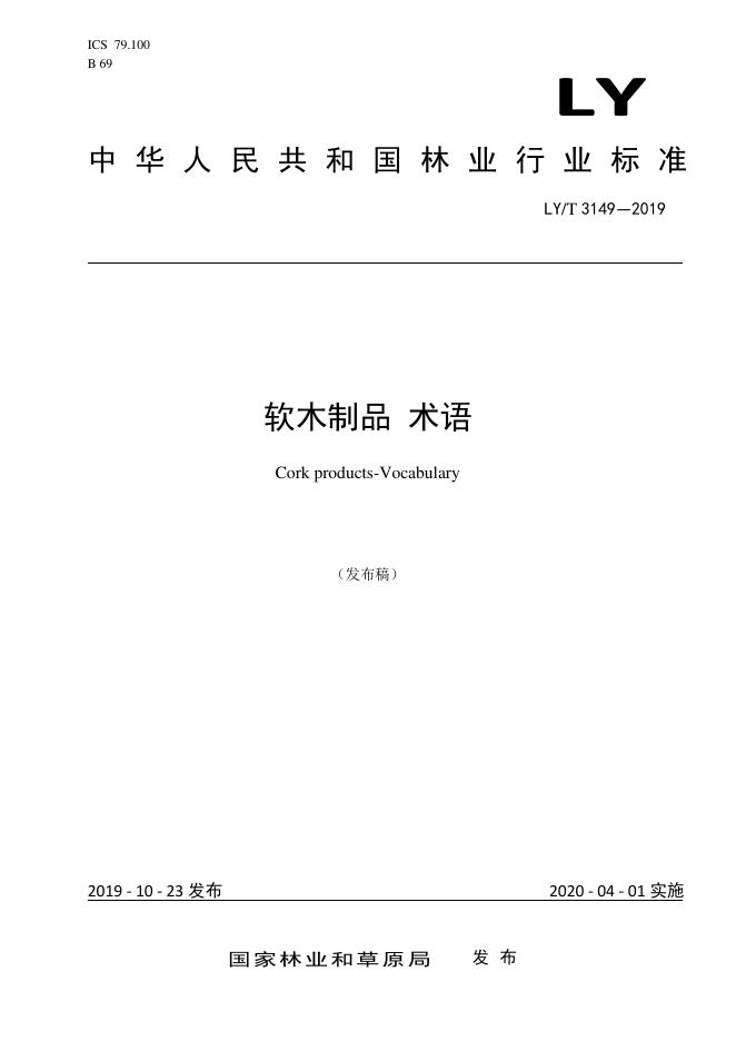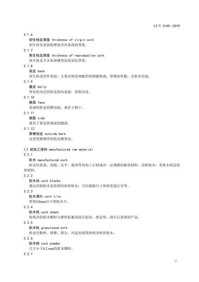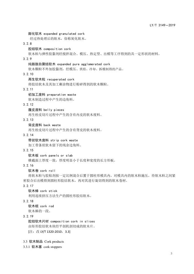 LY/T 3149-2019 软木制品 术语