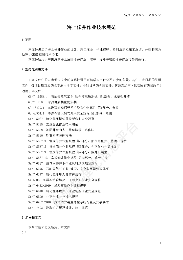SY/T 7825-2024 海上修井作业技术规范
