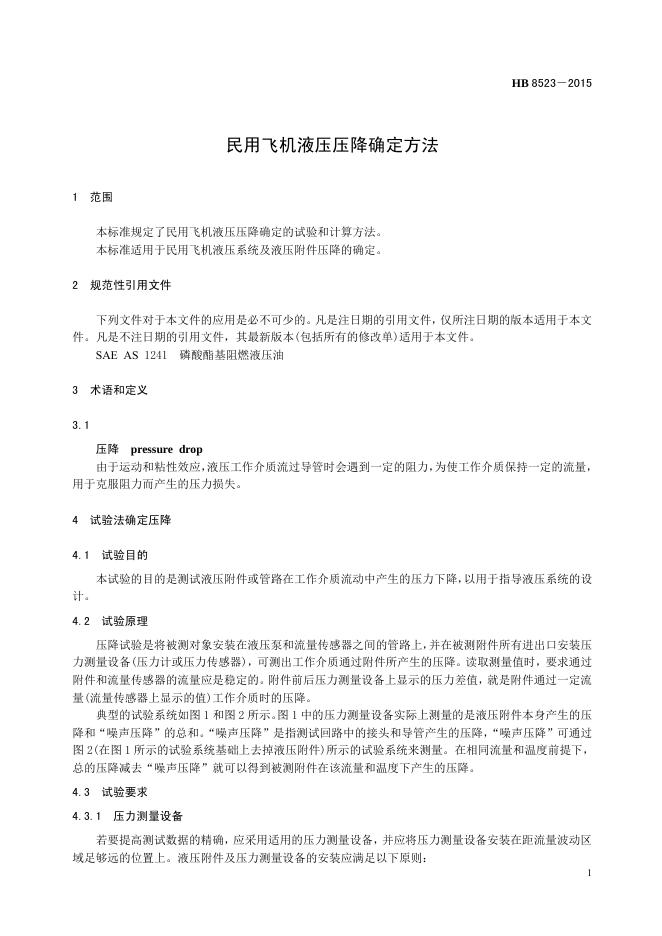 HB 8523-2015 民用飞机液压压降确定方法(2017)
