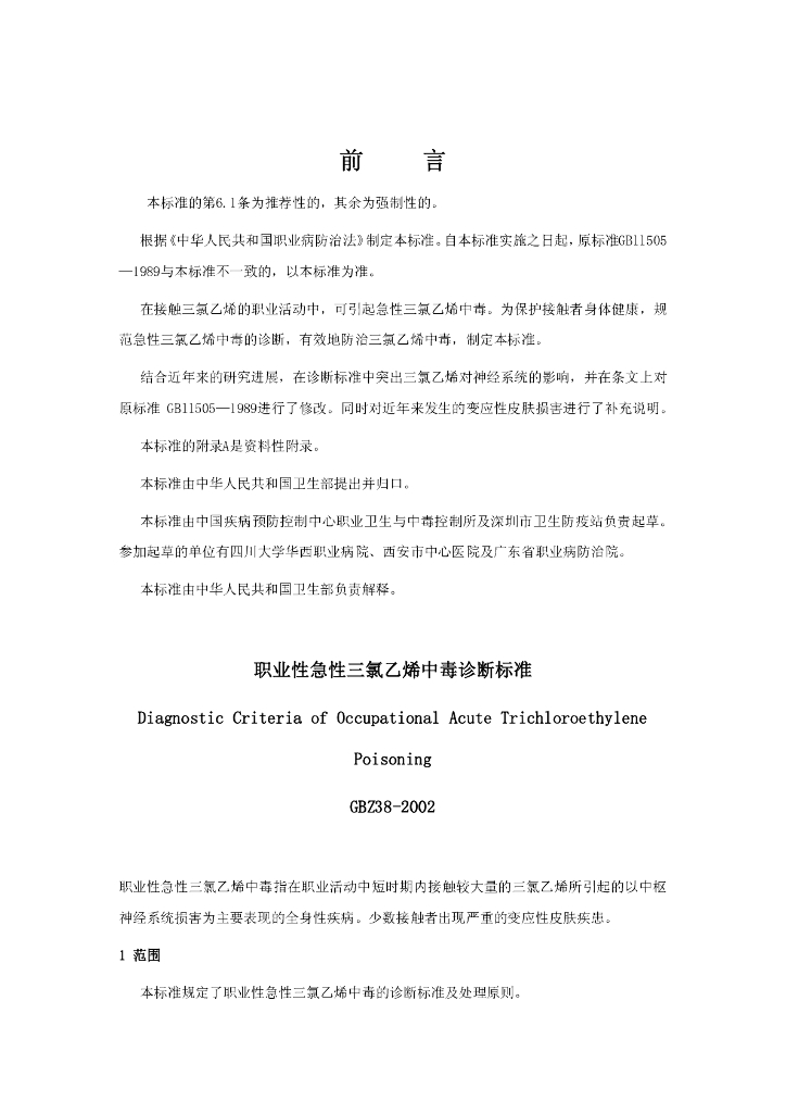 中国疾病预防控制中心职业卫生中毒控制所、深圳市卫生防疫站负责起草、四川大学华西职业病院、西安市中心医院、广东省职业病防治院