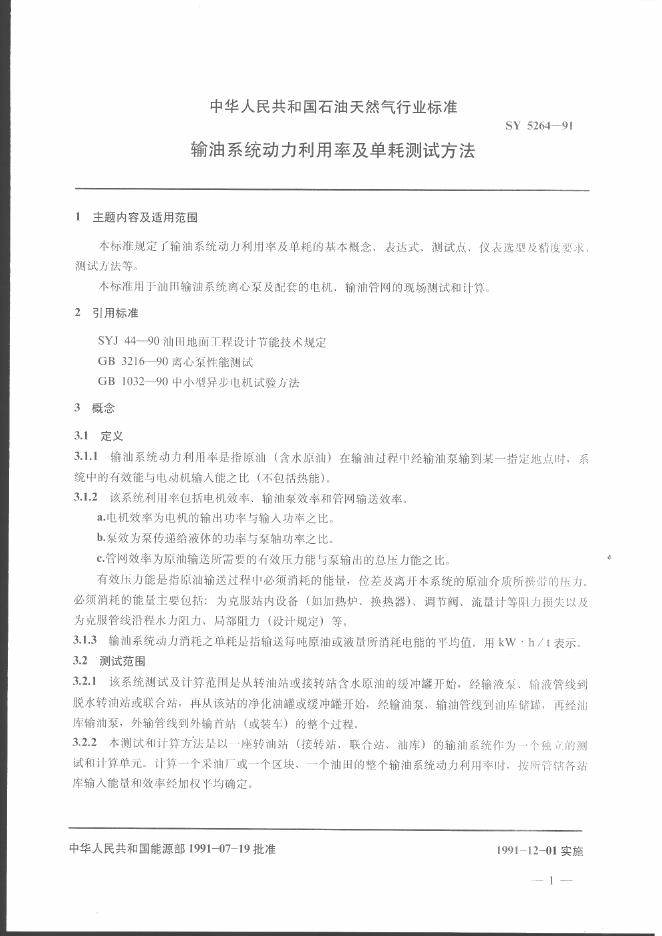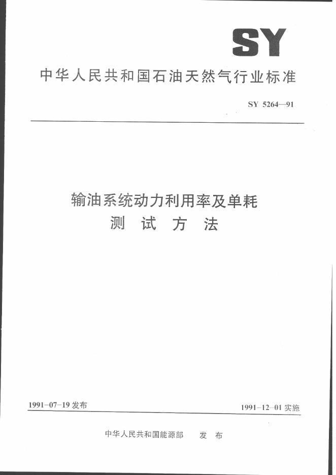 SY 5264-1991 输油系统动力利用率及单耗测试方法