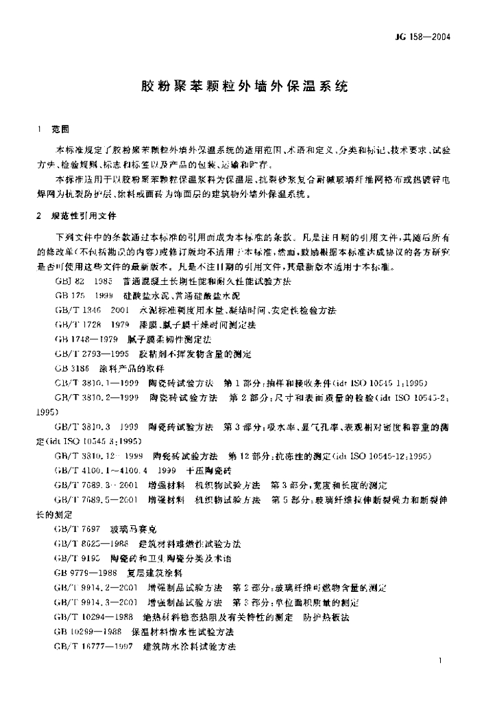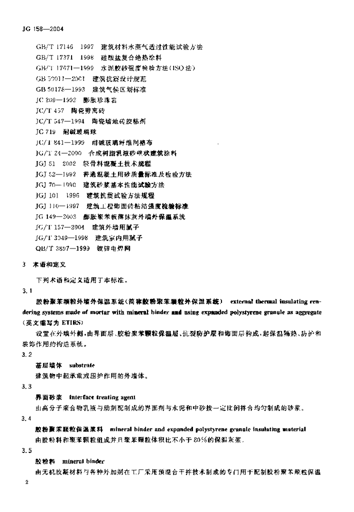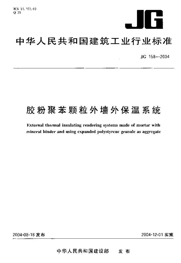 JG 158-2004 胶粉聚苯颗粒外墙外保温系统