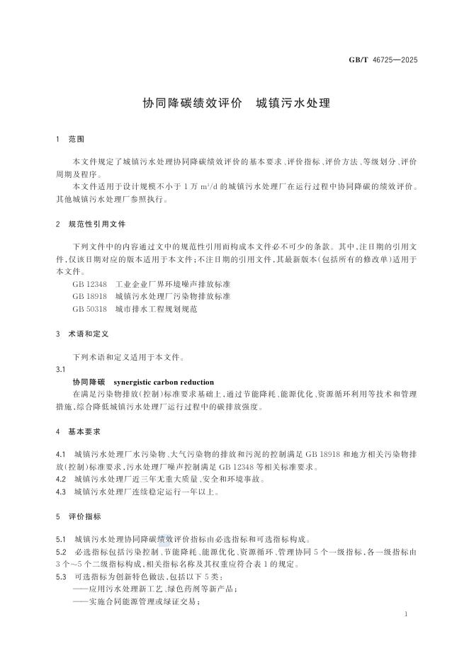 GB/T 46725-2025 协同降碳绩效评价 城镇污水处理