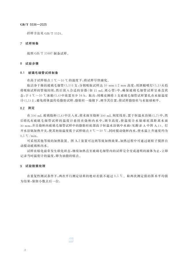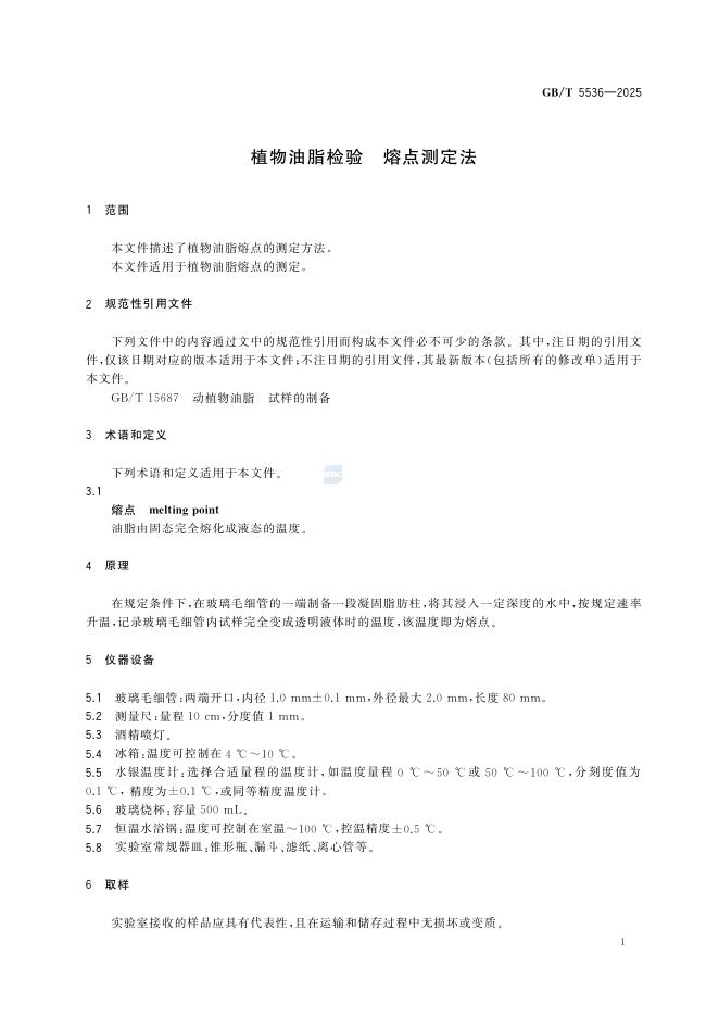 GB/T 5536-2025 植物油脂检验 熔点测定法