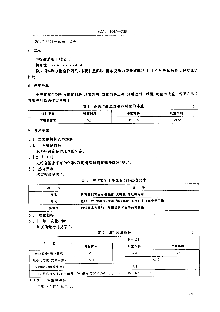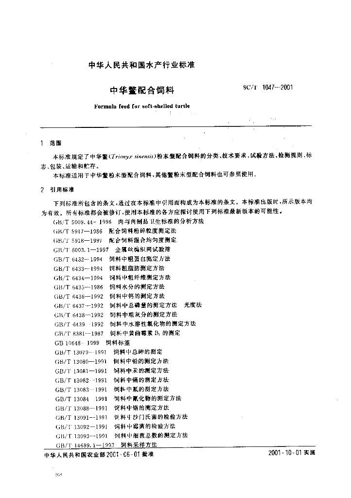 SC/T 1047-2001 中华鳖配合饲料