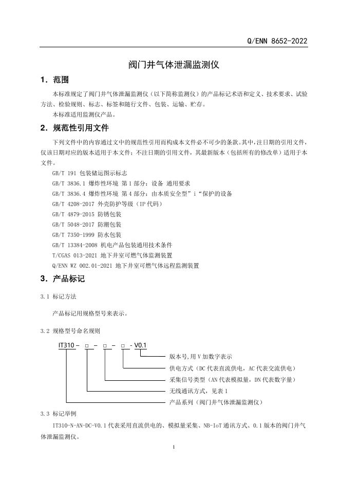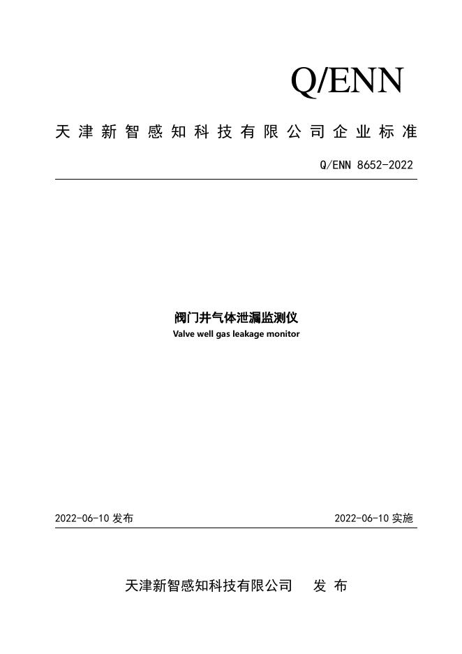 Q/ENN 8652-2022 阀门井气体泄漏监测仪