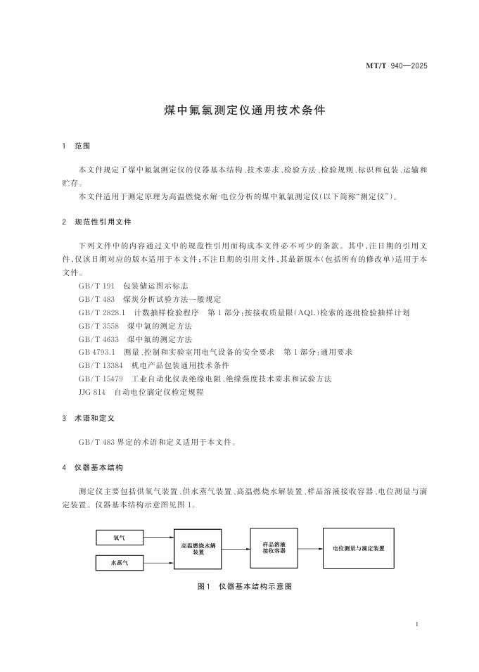 MT/T 940-2025 煤中氟氯测定仪通用技术条件