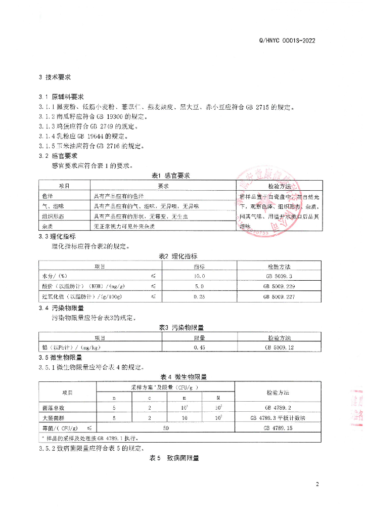 Q/HNYC 0001S-2022 贝安棠粗粮饼干