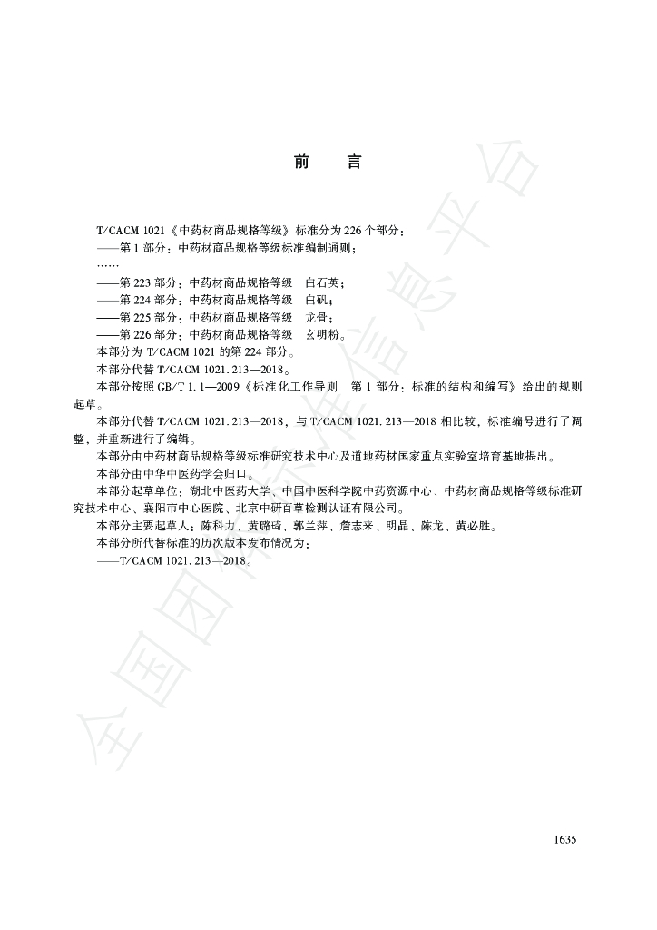 湖北中医药大学、 中国中医科学院中药资源中心、 中药材商品规格等级标准研究 技术中心、 南漳县人民医院、 北京中研百草检测认证有限公司