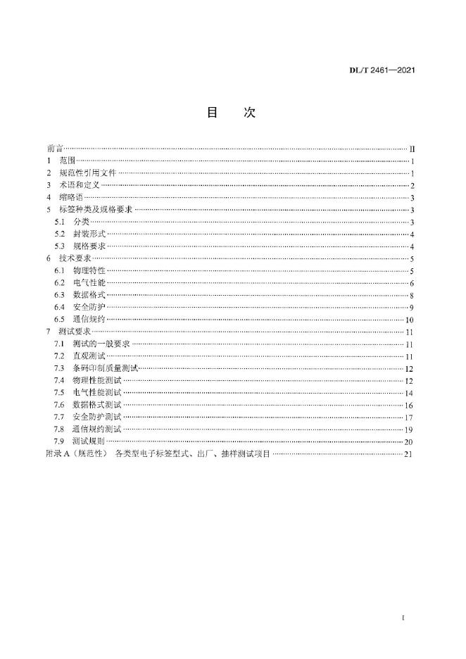 DL/T 2461-2021 电力行业电子标签通用技术要求与测试规范