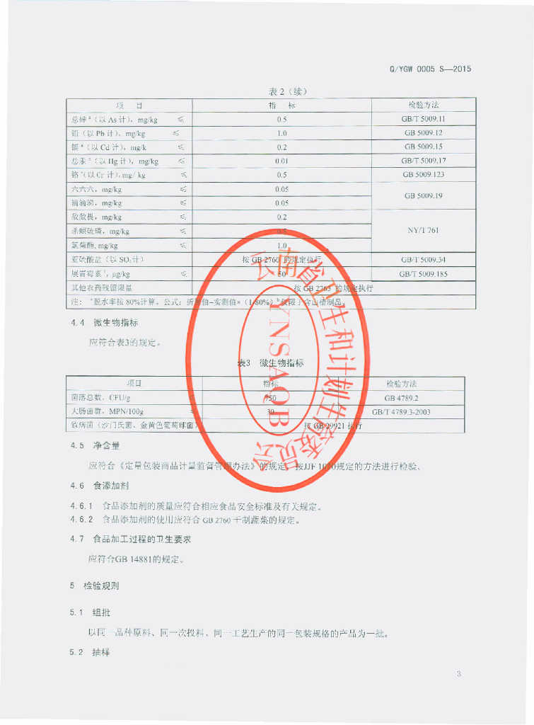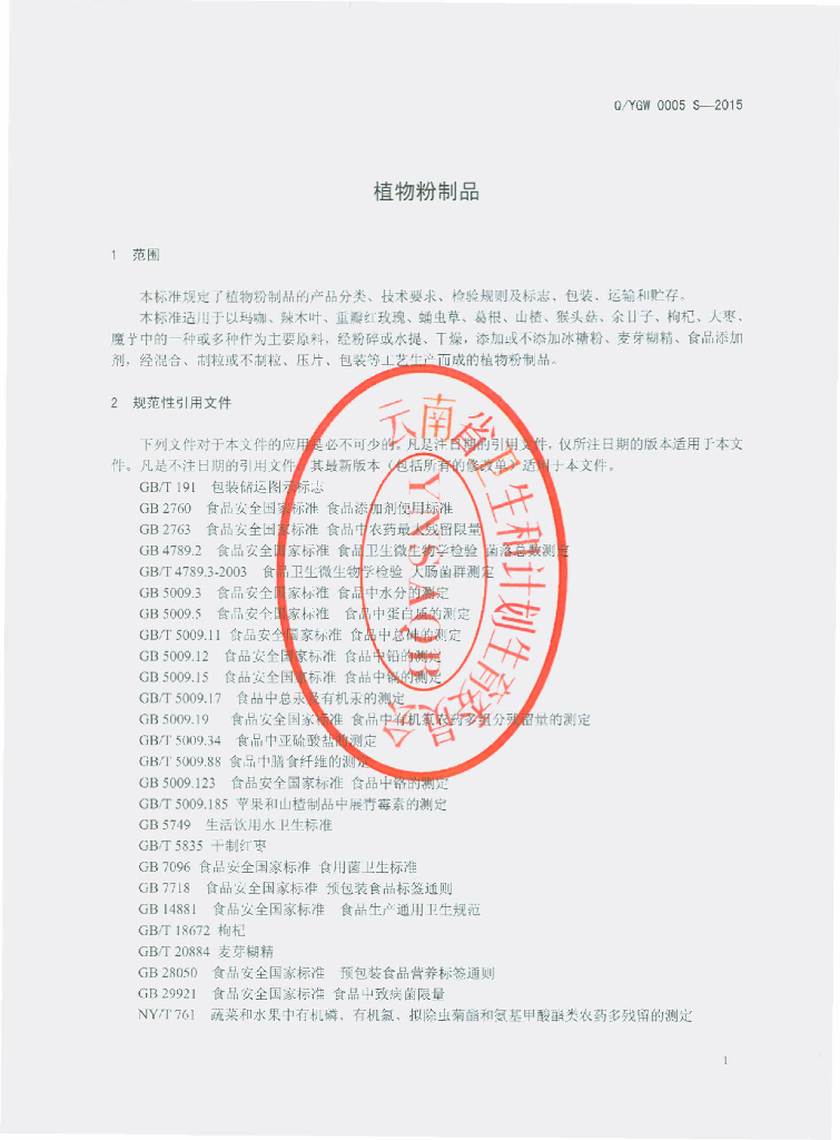 Q/YGW 0005S-2015 云南国威生物科技有限公司 植物粉制品