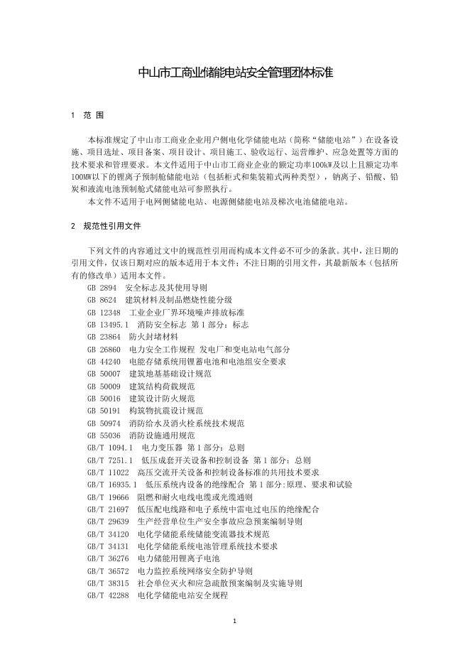 T/ZSDLX 001-2026 中山市工商业储能电站安全管理团体标准