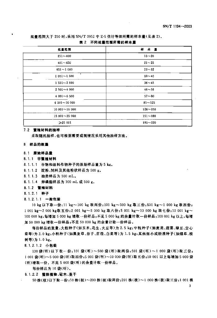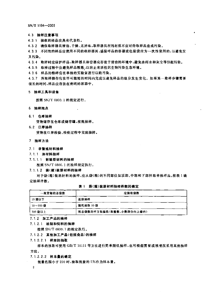 SN/T 1194-2003 植物及其产品转基因成分检测抽样和制样方法