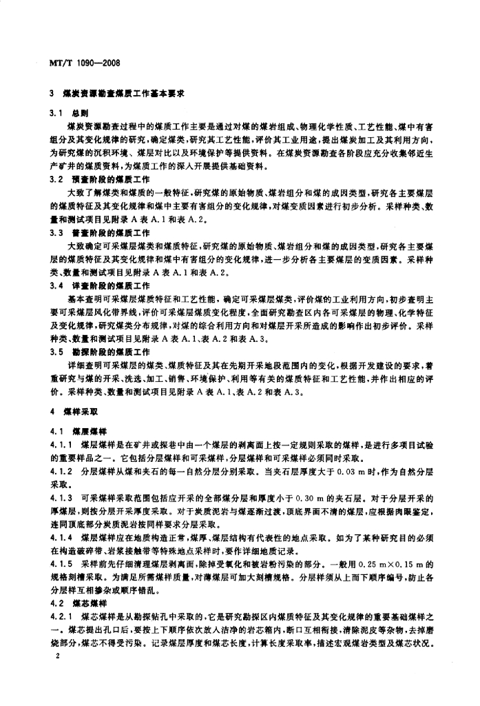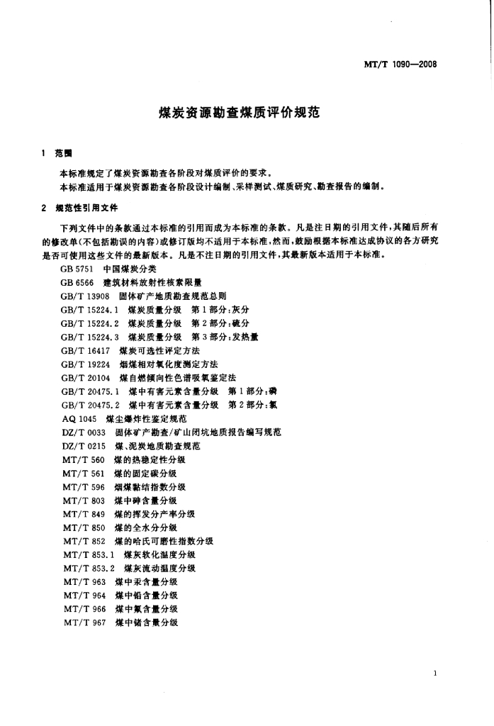 MT/T 1090-2008 煤炭资源勘查煤质评价规范