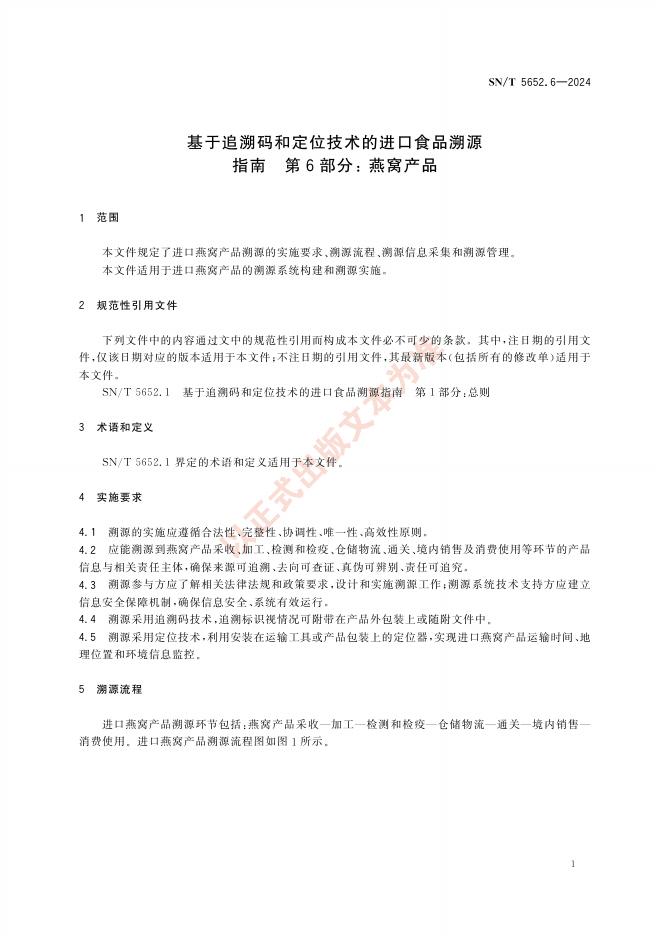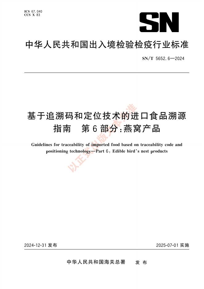 SN/T 5652.6-2024 基于追溯码和定位技术的进口食品溯源指南 第6部分:燕窝产品