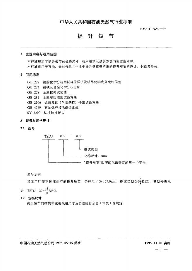SY/T 5699-1995 提升短节