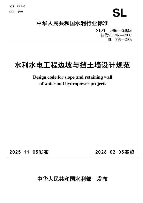 SL/T 386-2025 水利水电工程边坡与挡土墙设计规范