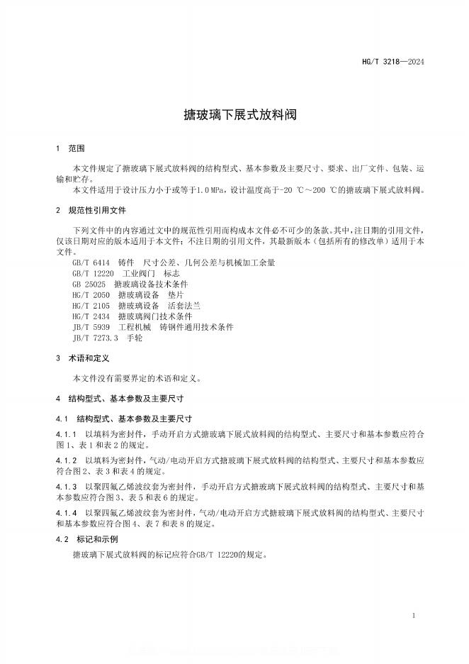 HG/T 3218-2024 搪玻璃下展式放料阀