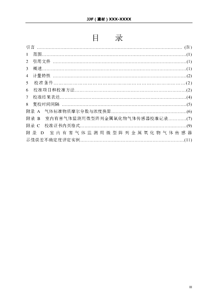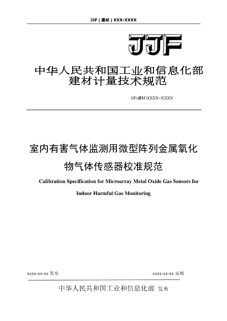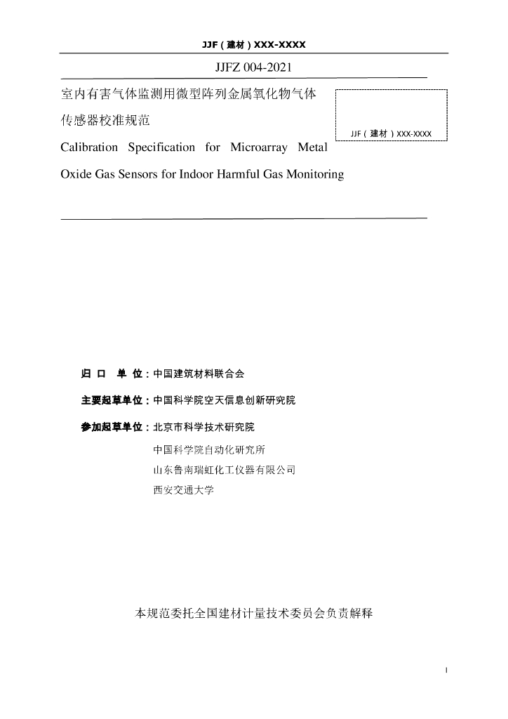 JJF(建材)204-2023 室内有害气体监测用微型阵列金属氧化物气体传感器校准规范(报批稿)