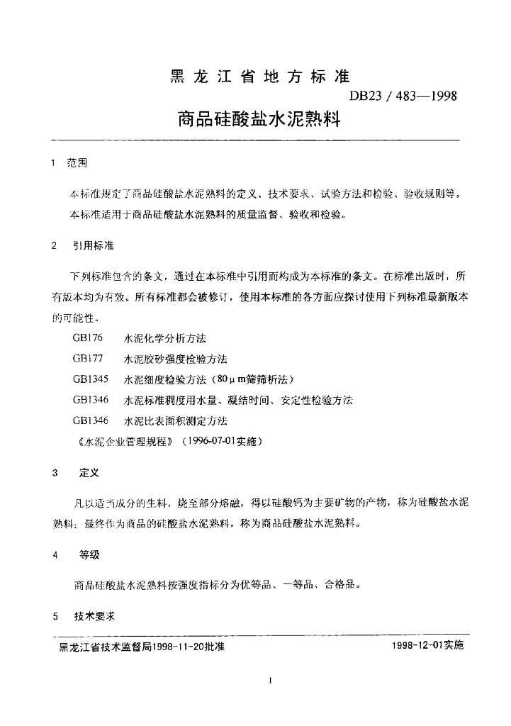 DB23/ 483-1998 商品硅酸盐水泥熟料