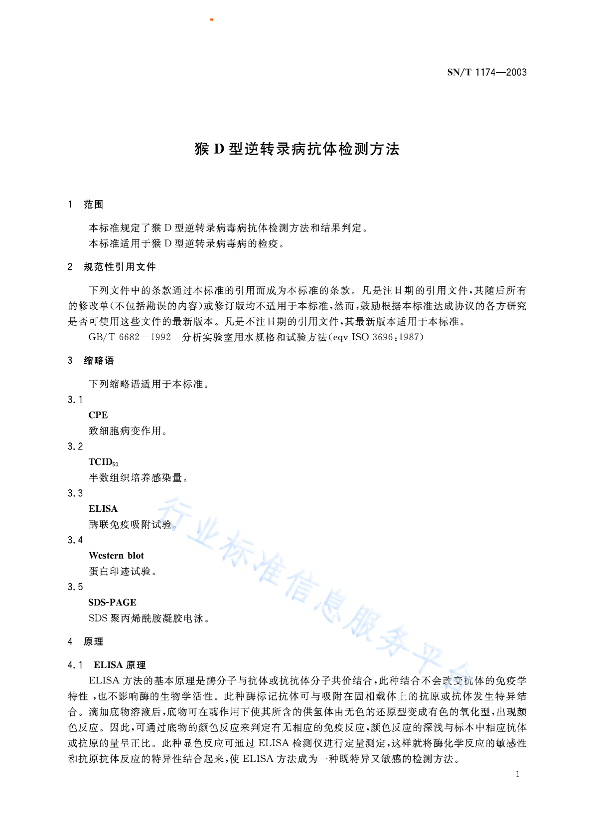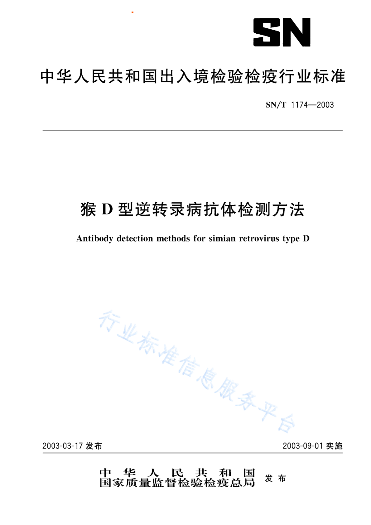 SN/T 1174-2003 猴D型逆转录病毒抗体检测方法