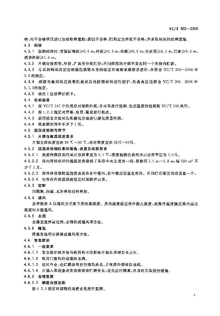 YC/T 300-2009 片烟贮存养护 通用技术要求