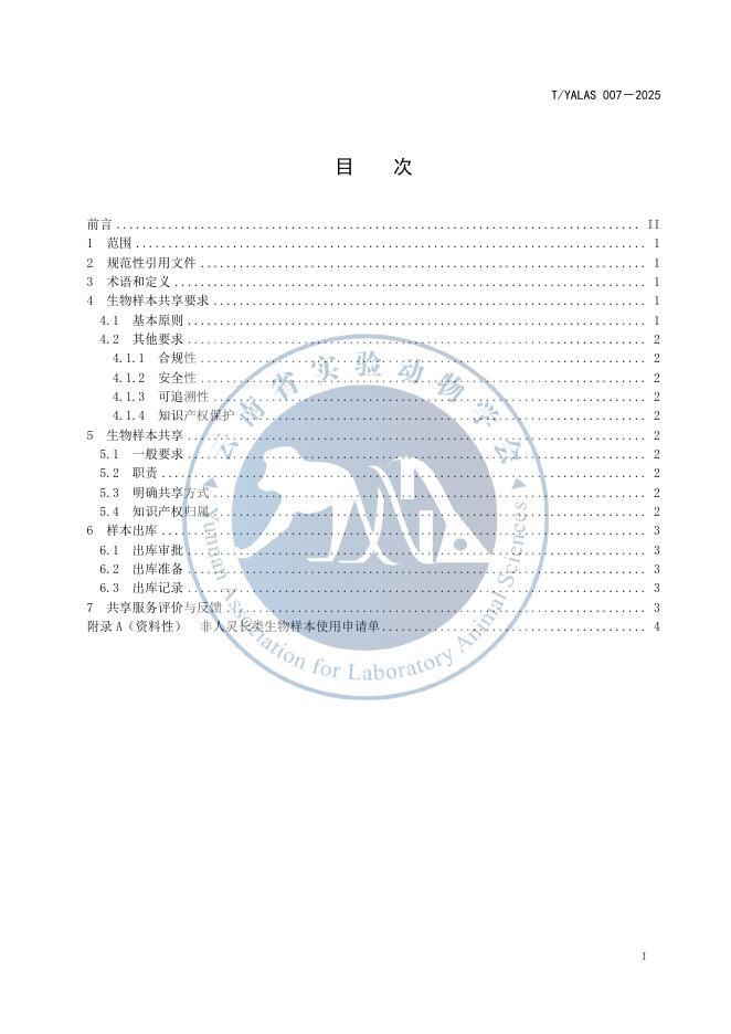 T/YALAS 007-2025 非人灵长类生物样本共享服务规程