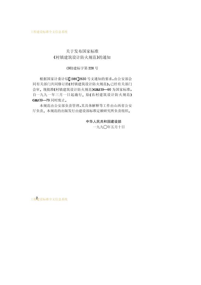 GBJ 39-1990 村镇建筑设计防火规范