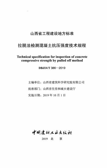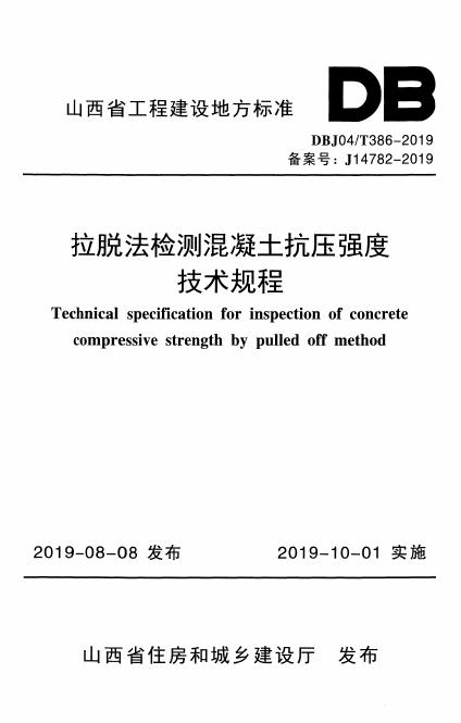 DBJ04/T 386-2019 拉脱法检测混凝土抗压强度技术规程