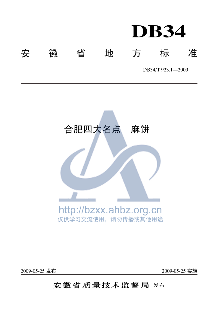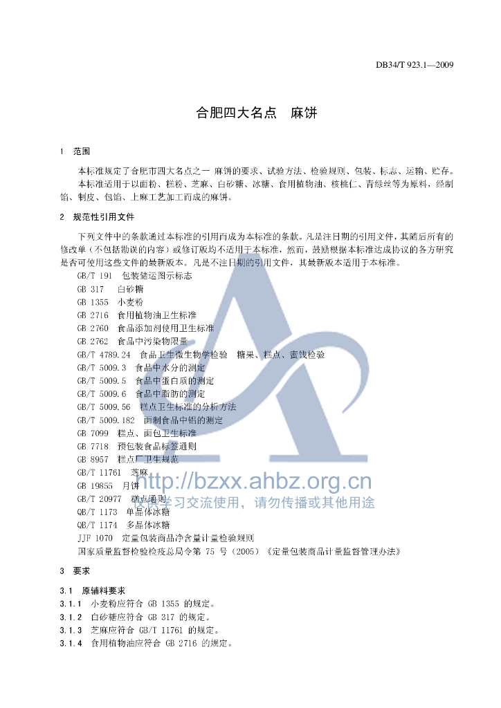 DB34/T 923.1-2009 合肥四大名点 麻饼