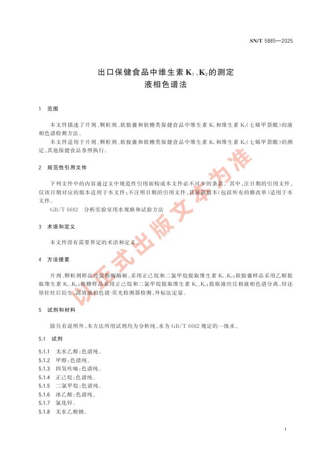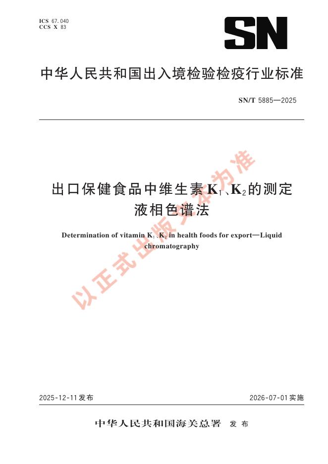 SN/T 5885-2025 出口保健食品中维生素K1、K2的测定 液相色谱法