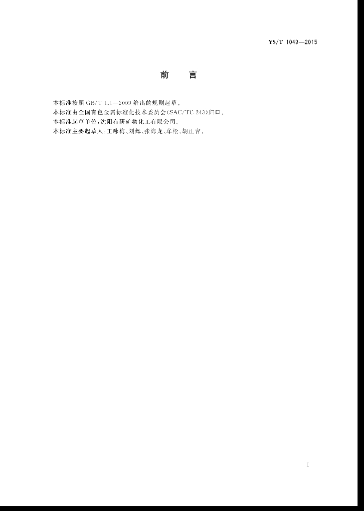 YS/T 1049-2015 异丁基黄原酸甲酸乙酯