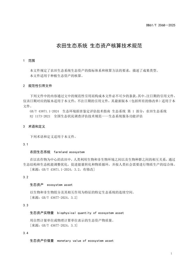 DB61/T 2068-2025 农田生态系统 生态资产核算技术规范