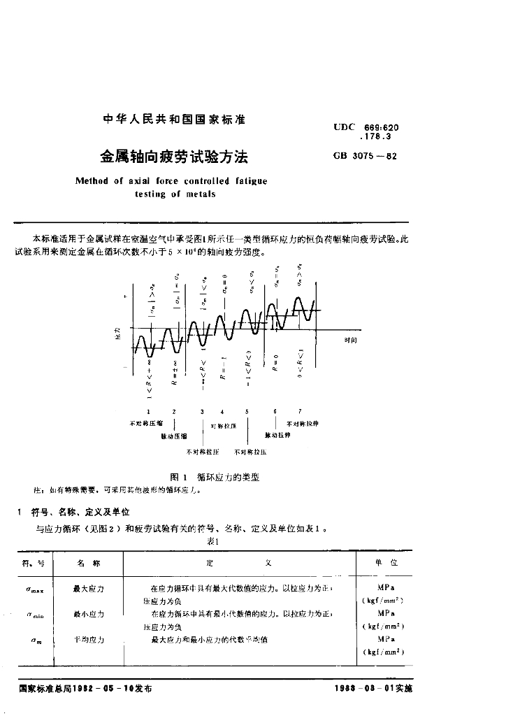 GB/T 3075-1982 金属轴向疲劳试验方法