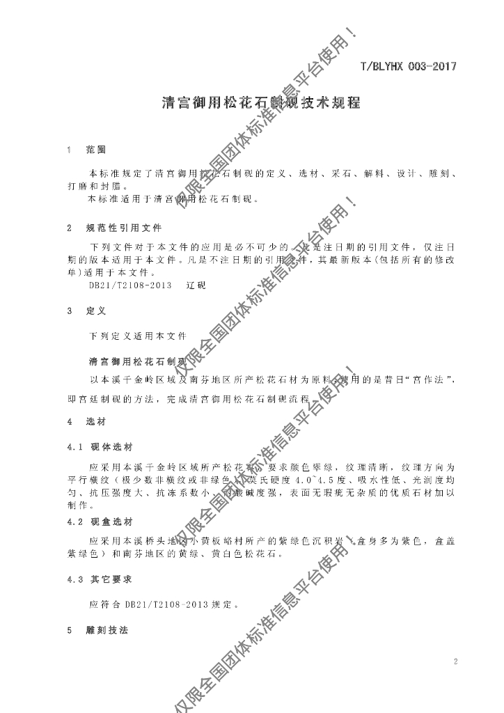 T/BLYHX 003-2017 清宫御用松花石制砚技术规程