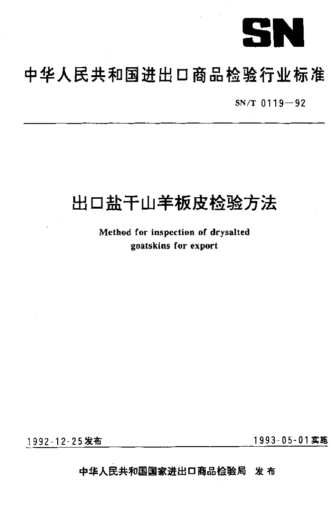 SN/T 0119-1992 出口盐干山羊板皮检验方法