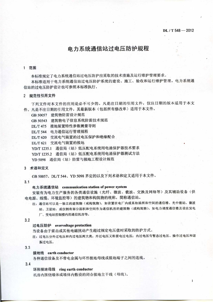 DL/T 548-2012 电力系统通信站过电压防护规程