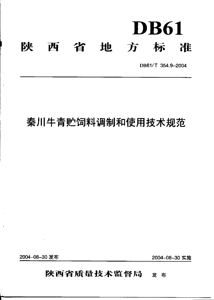 DB61/T 354.9-2004 秦川牛青贮饲料调制和使用技术规范