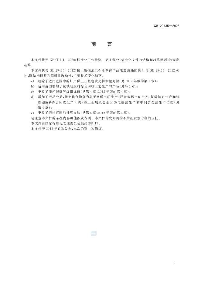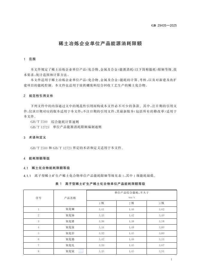 GB 29435-2025 稀土冶炼企业单位产品能源消耗限额