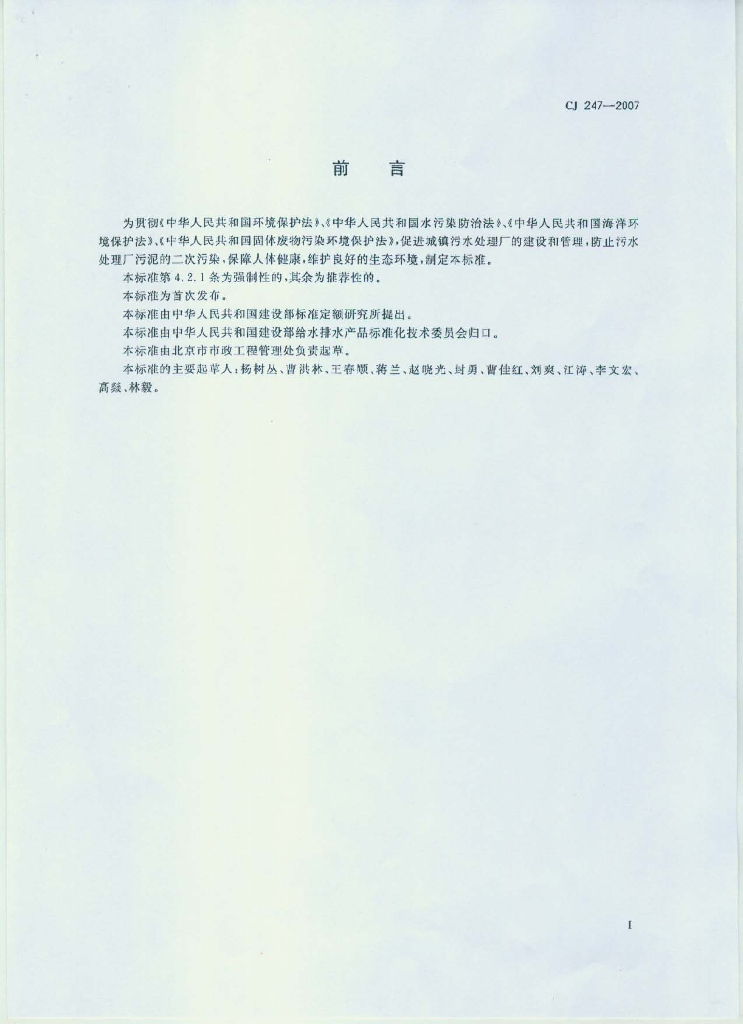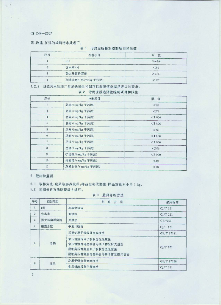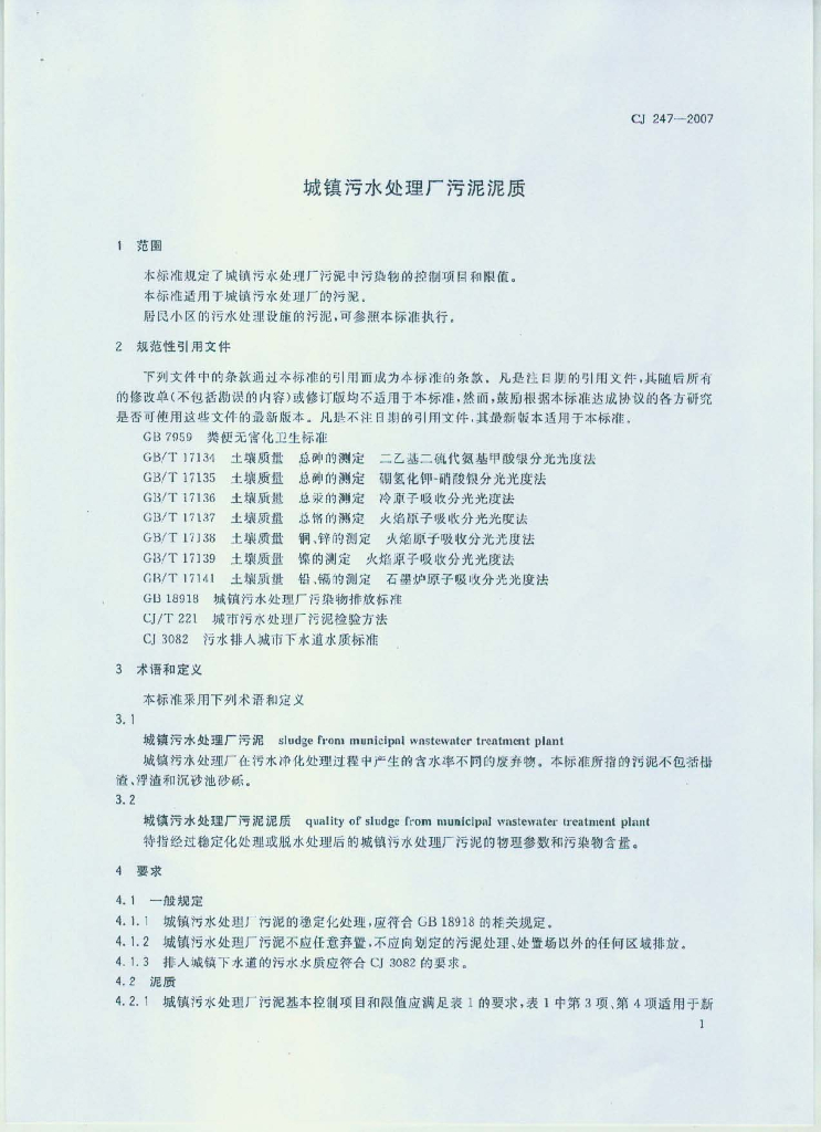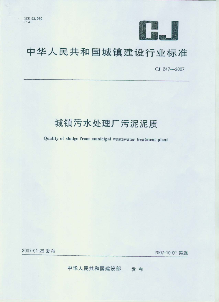 CJ 247-2007 城镇污水处理厂污泥泥质