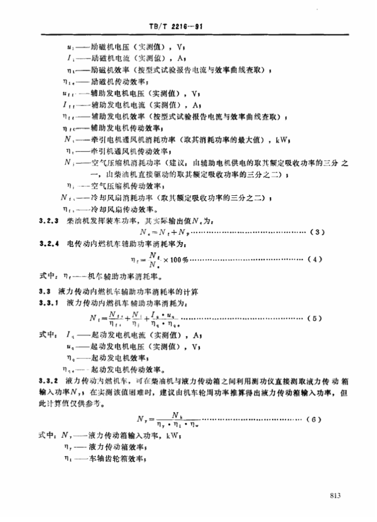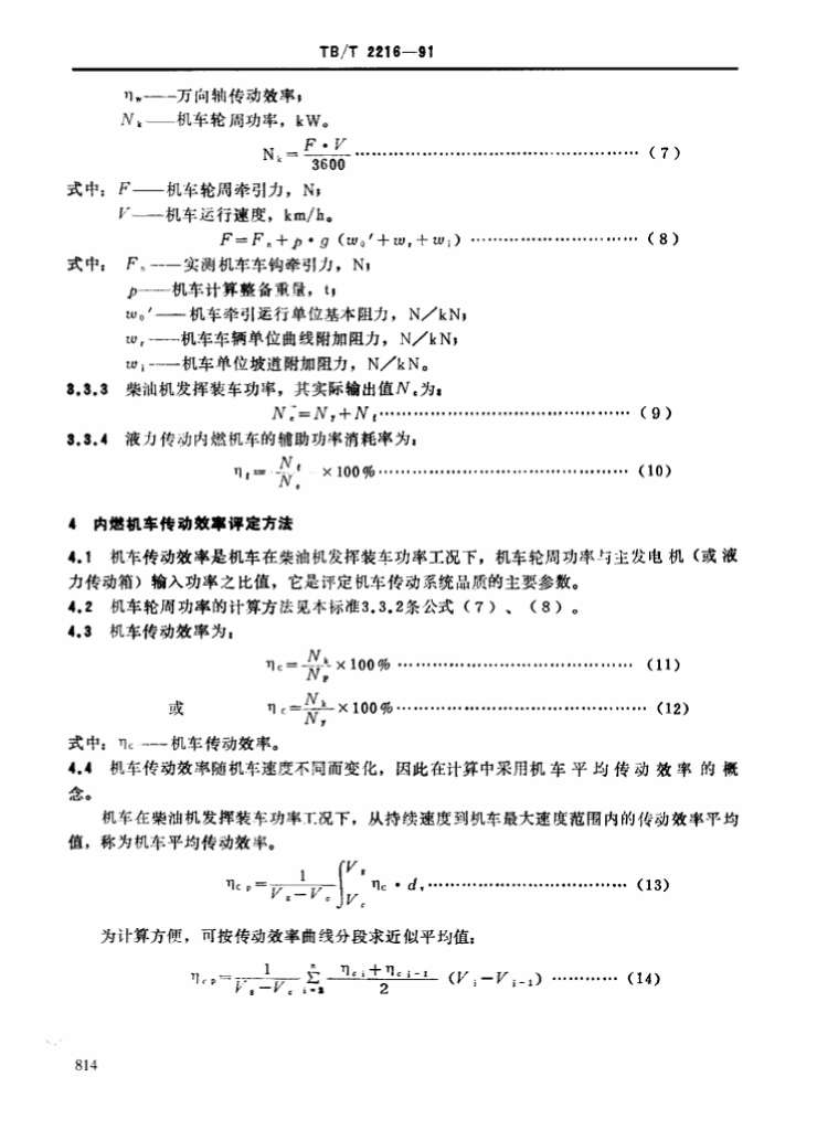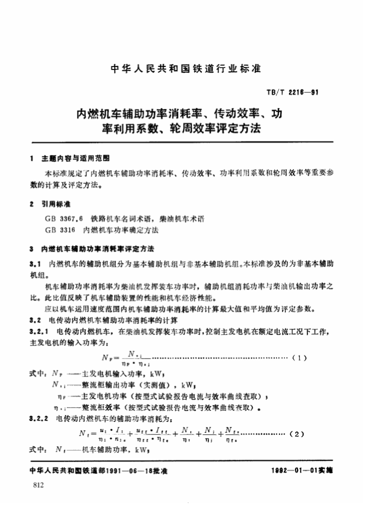 TB/T 2216-1991 内燃机车辅助功率消耗率、传动效率、功率利用系数、轮周效率评定方法