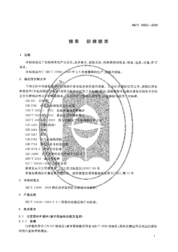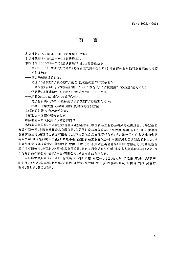 SB/T 10022-2008 糖果 奶糖糖果