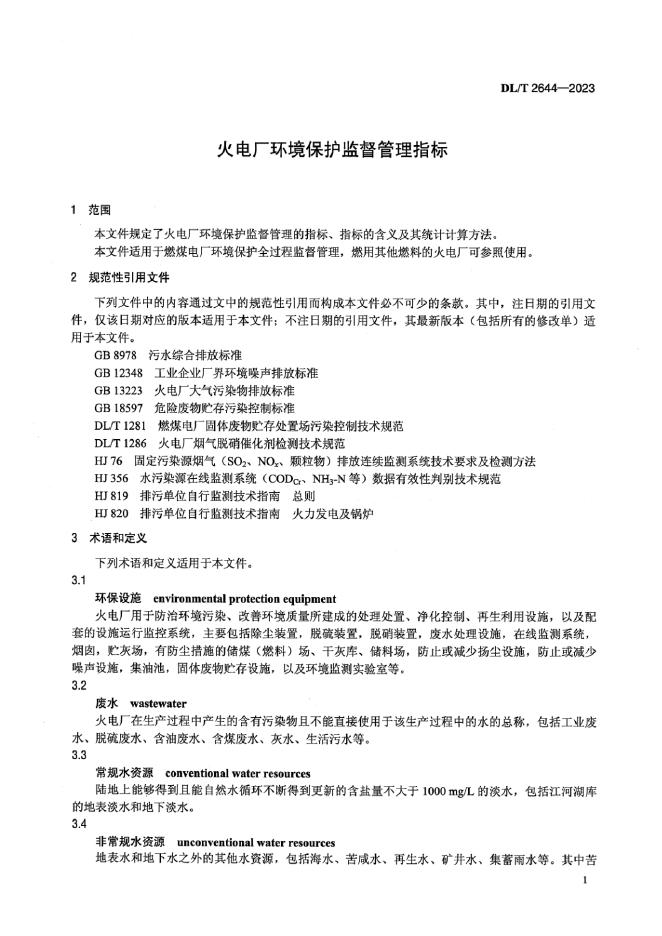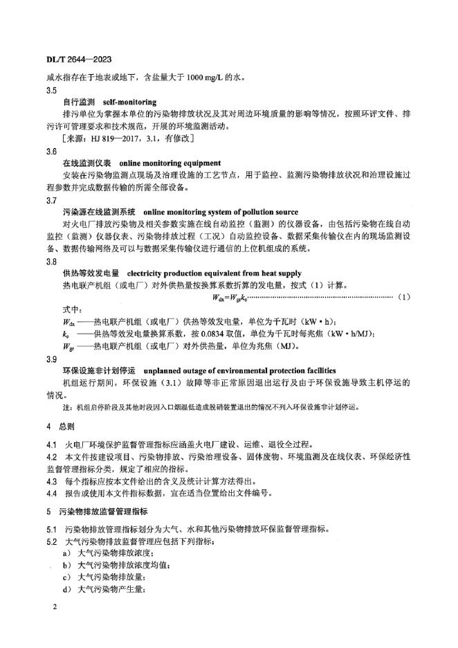 DL/T 2644-2023 火电厂环境保护监督管理指标