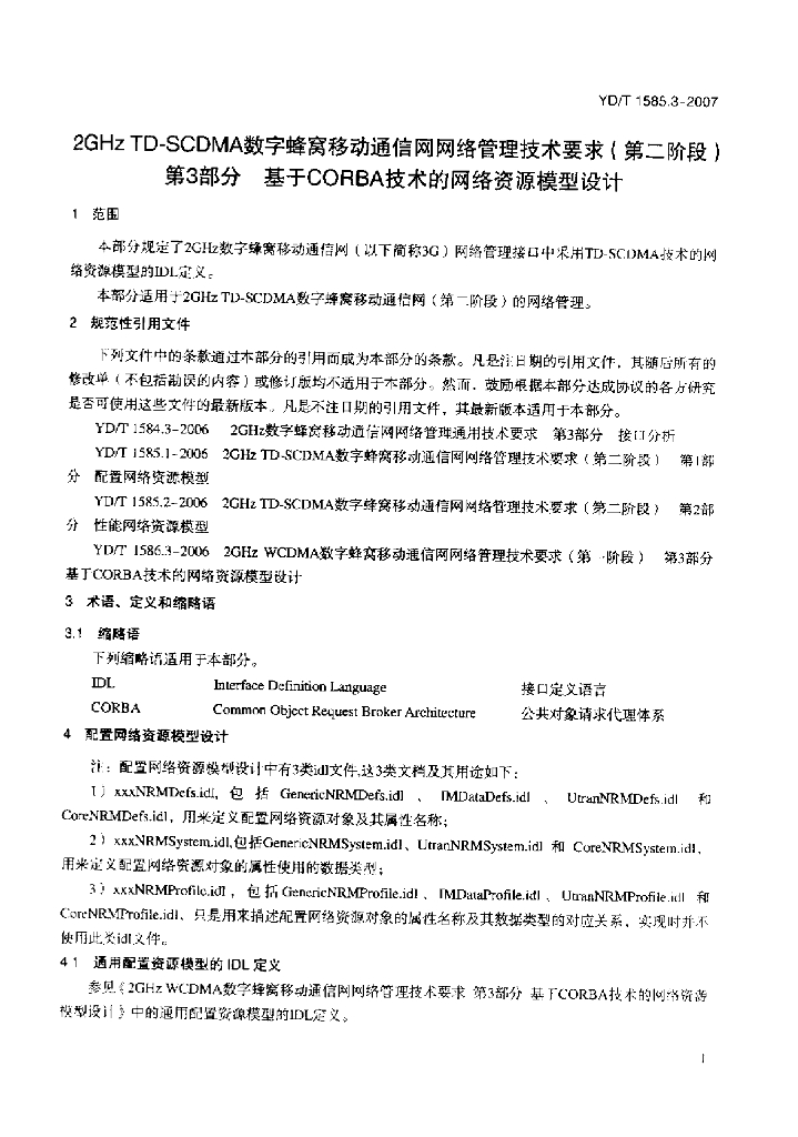 YD/T 1585.3-2007 2GHz TD-SCDMA 数字蜂窝移动通信网网络管理技术要求(第二阶段) 第3部分:基于 CORBA 技术的网络资源模型设计