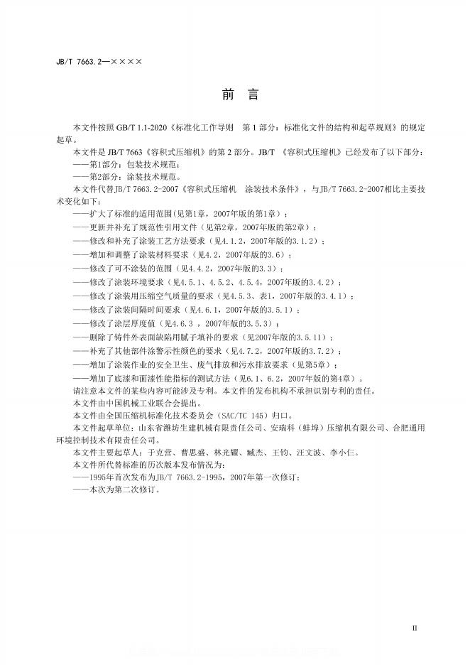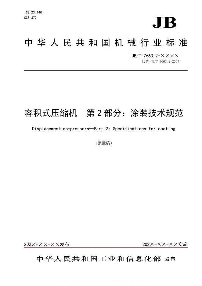 JB/T 7663.2-2023 容积式压缩机 第2部分:涂装技术规范(报批稿)