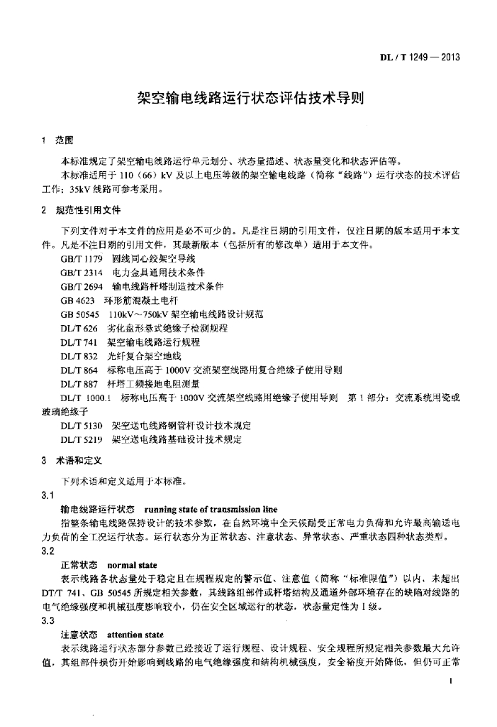 DL/T 1249-2013 架空输电线路运行状态评估技术导则