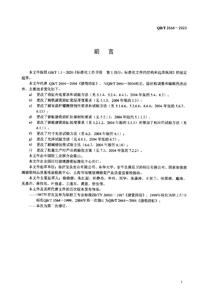 - 代替标准:QB/T 2664-2004