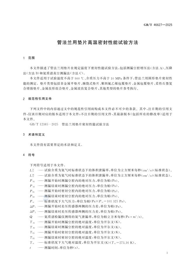 GB/T 46627-2025 管法兰用垫片高温密封性能试验方法