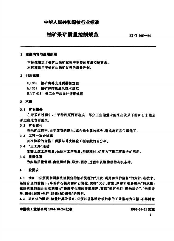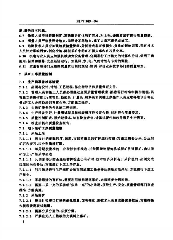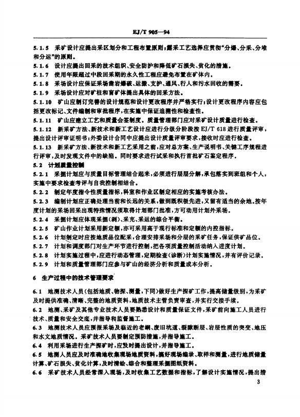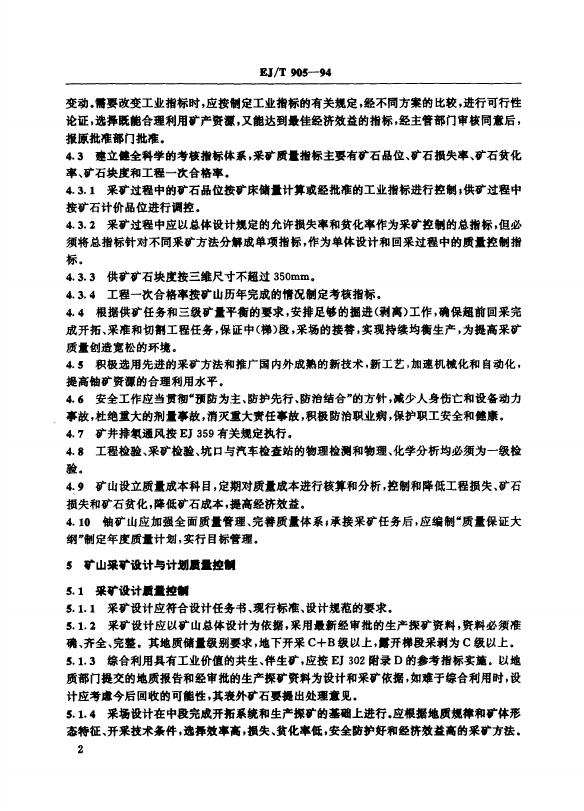 EJ/T 905-1994 铀矿采矿质量控制规范
