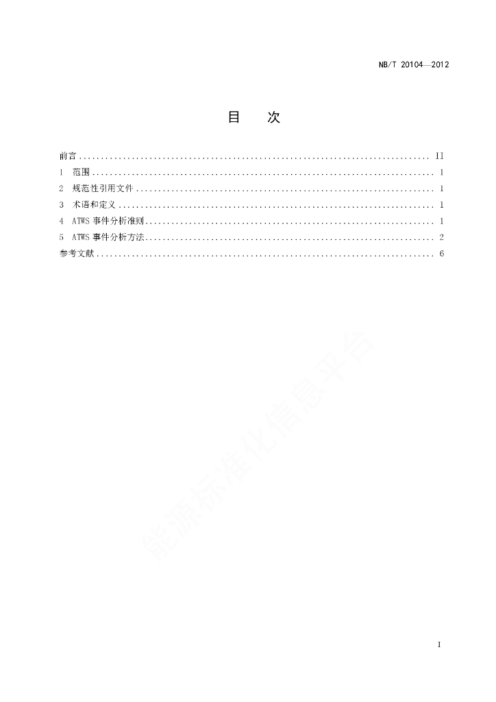 NB/T 20104-2012 压水堆核电厂未能紧急停堆的预期瞬态分析要求